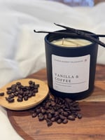 Our stunning custom soy blend candles are hand poured by me. Made with phthalate; parabens-free fragrance oils and two clean burning cotton wicks inside a glass jar with a wooden lid. 50+ hour burn/360g.